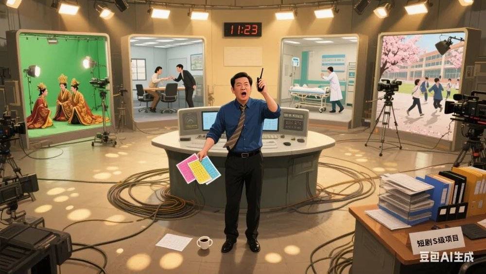 像河南的X新短剧公司,他们上半年的制作方式是8+3,就是8天套拍3部短剧。这样的短剧质量,我们很难评价,但是也要承认,是真的没有本事赚那份钱。